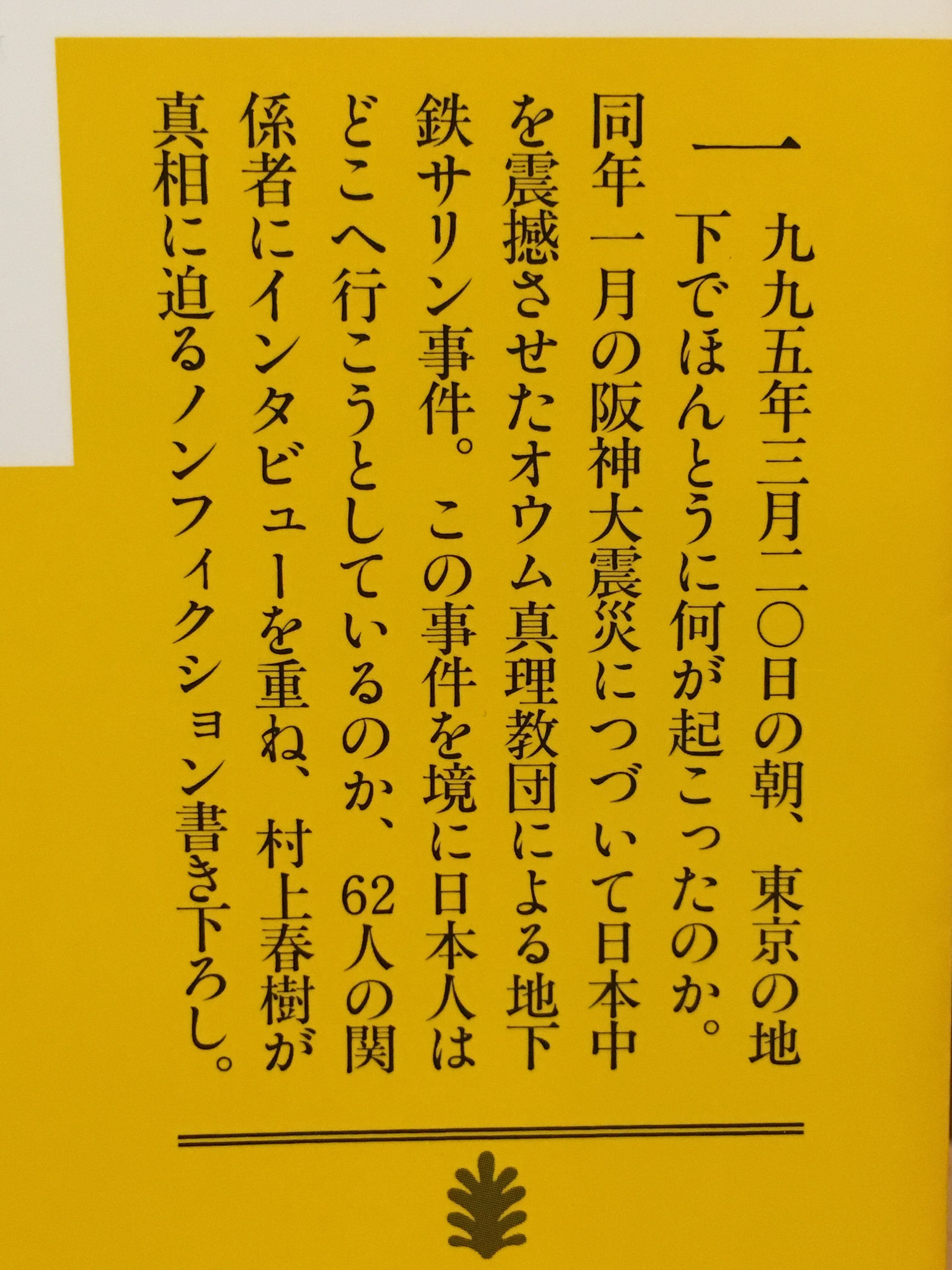2. 『アンダーグラウンド』、村上春樹著、講談社文庫、1999