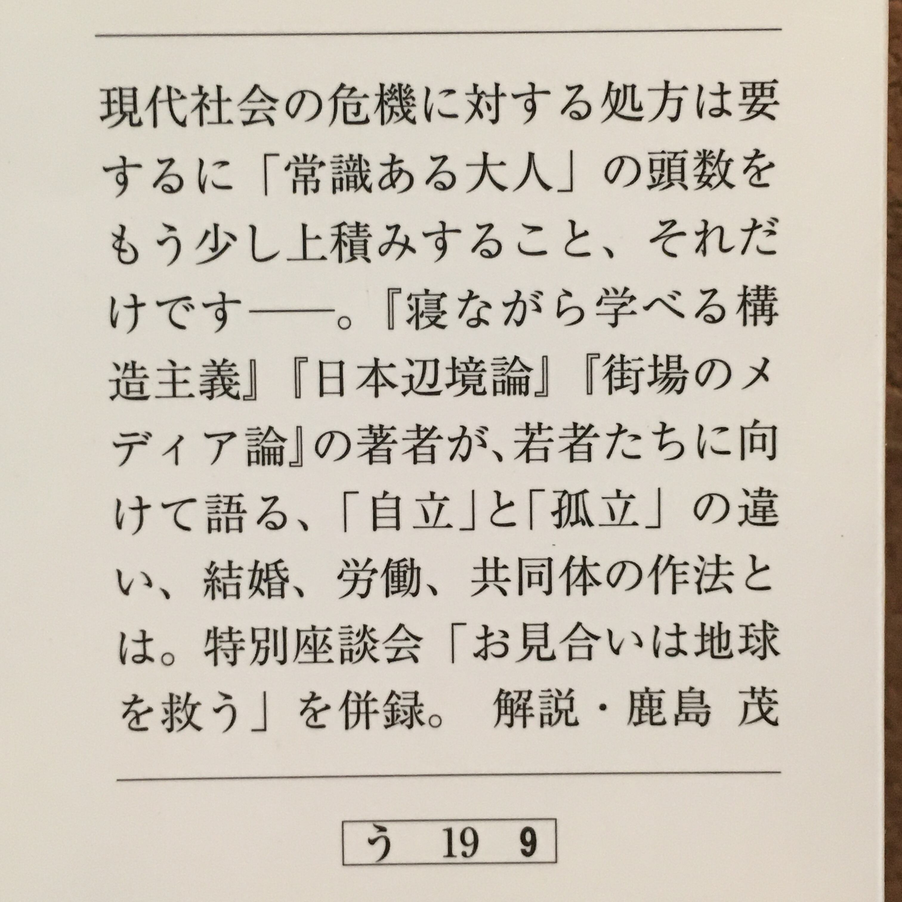 2. 『ひとりでは生きられないのも芸のうち』、内田樹著、文春文庫、2011